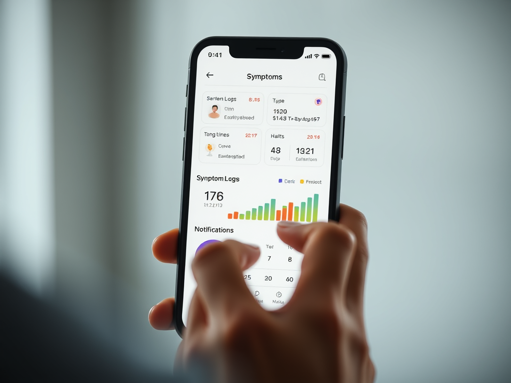 A smartphone displaying a symptom tracking app, highlighting the importance of monitoring menopause-related changes.
