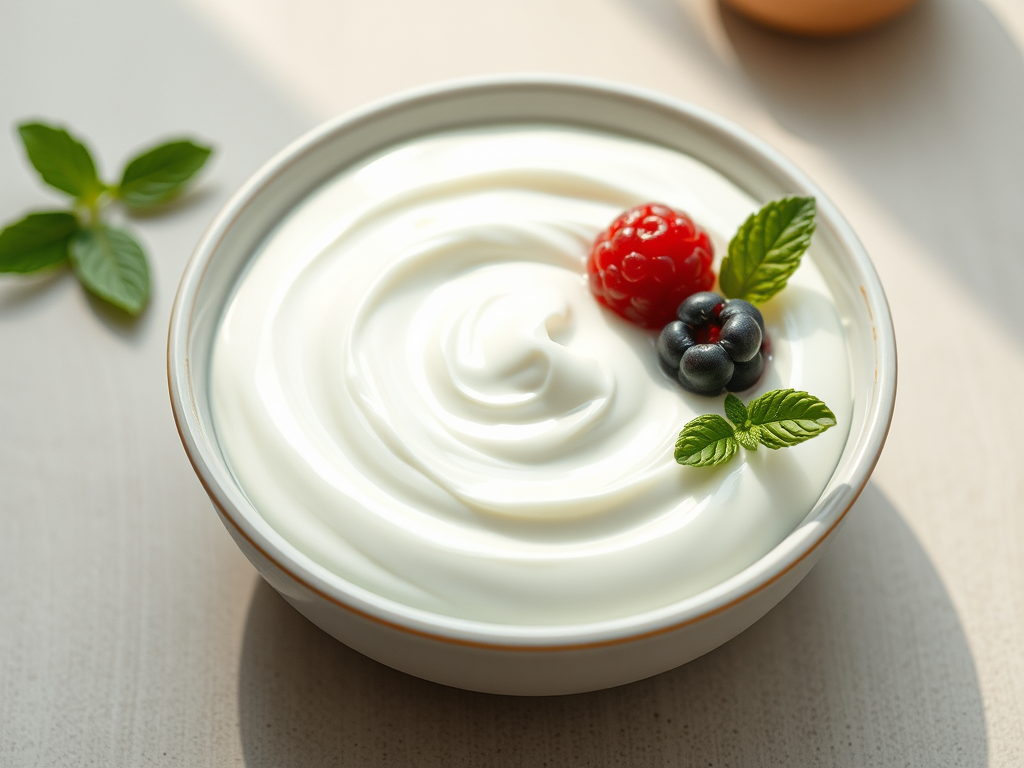 A bowl of yogurt topped with berries and mint, highlighting the importance of gut health during menopause.